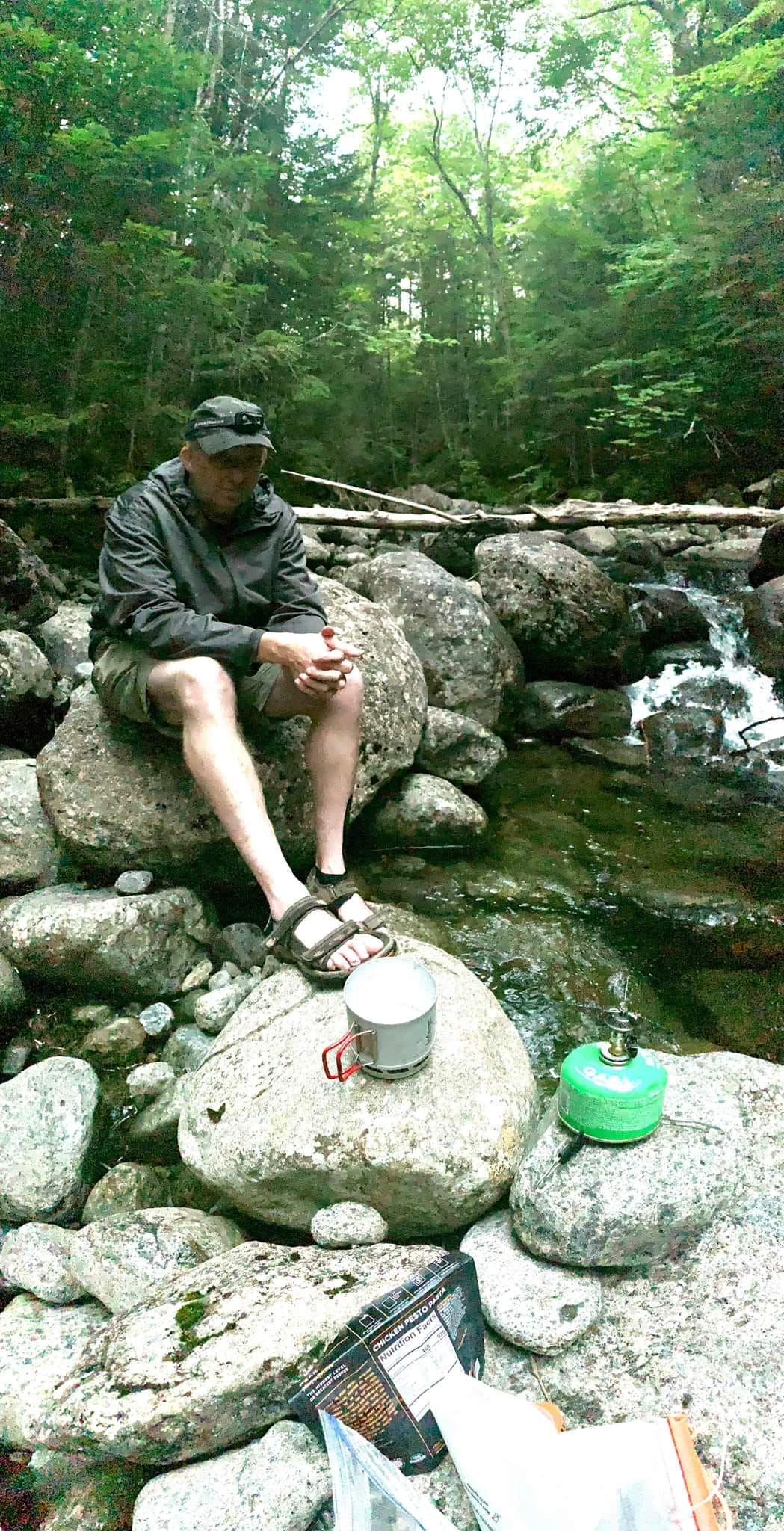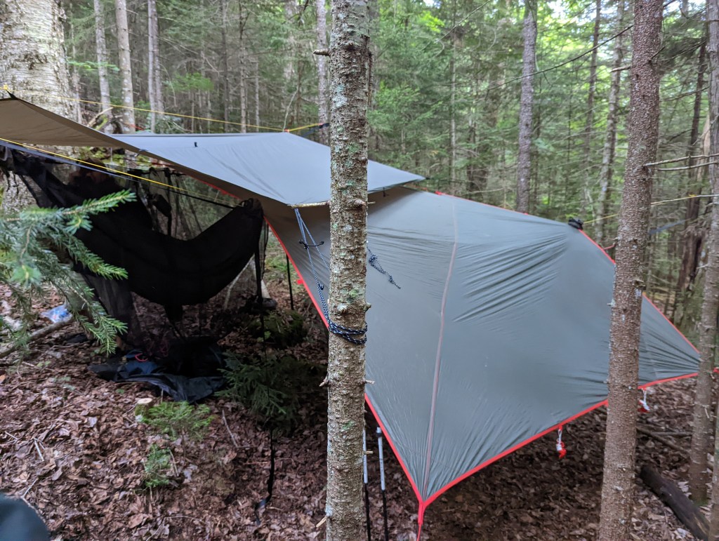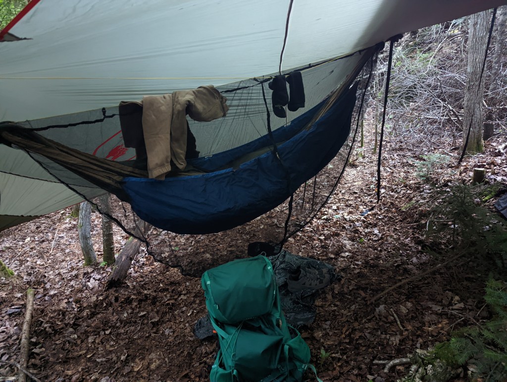 There are no official camping areas on this hike, but people who camp typically do so near the crossing of Skylight Book. That’s what we did. More or less the 150′ from the trail and the brook we pitched our hammocks. After dinner we hit the rack with the intention of summiting in the morning.