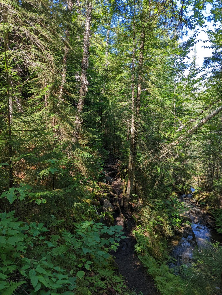 The first half of the hike is along a marked trail that is a combination of wilderness trail and old logging roads. Eventually you cross the Opalescent River at a spot where a foot bridge used to be. It was washed out in a storm a number of years ago and hasn’t been replaced. During high water times you may have to wade across but in Mid August we were able to rock hop across easily. Another mile or so down the trail follow the cairns right to the herd path that is the remainder of the way up. The path is pretty well worn and easy to follow.